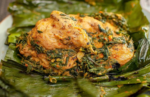 蕉叶鸡(Ayam Betutu)是巴厘岛标志性的佳肴,被CNN列入“2022年全球最美味辛辣美食”榜单。在一只整鸡里填充上传统的香料,然后用香蕉叶包起来,置于炭火中烘烤6到7个小时,非常香酥入味。