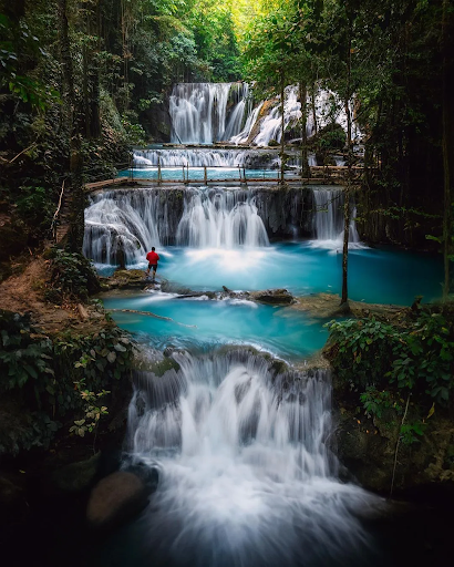 瀑布缓慢地流过峭壁,周围环绕着茂密的热带植物,下方水池的舒缓声音如同一曲协奏曲。建议在雨季前往,欣赏水势猛的瀑布,但要做好潮湿天气的准备。