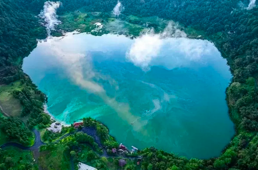五 色 湖(Lake Linow) 是 个 神 奇 的 会 变 色 的 火 山 湖,在当地土著米娜哈沙人的语言中意为“水聚集的 地方”。湖面浓重的硫磺味告诉我们,这面湖形成于 几百年前马哈武火山(Mahawu)喷发。它为什么会 变色呢?则源于湖底几个泉口不断喷涌,从地壳深处 带出化学成分,湖水化学成分不均,导致同一时间不 同位置的湖水呈现不同颜色。