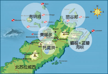 它就是苏拉威西北部, 这里有美娜多 (Manado, 布纳肯 (Bunaken) 等“潜水全明星”阵容, 这里是经 过世界五大潜水机构评出的“世界上最好的潜水圣地” 第一名!