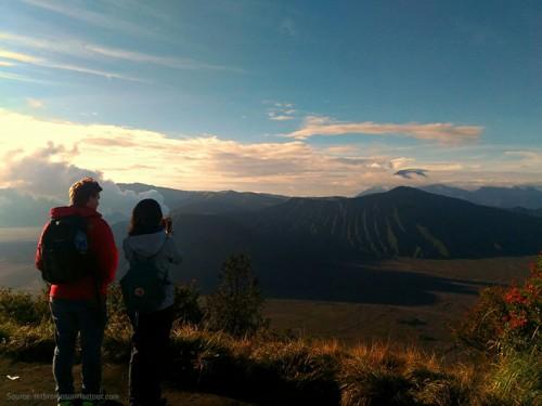 最大吸引力以及人们从各地旅行到布罗莫火山的原因是它壮观的日出。从附近Penanjakan山的一个有利位置,太阳以壮观的布罗莫火山为中心,周围的山脉制造了一个几乎超现实的气氛。从您的吉普车停放的位置,需要远足大约一个多小时的时间。太阳约五点三十分上升,因此您必须计划何时开始徒步旅行,依照您的体力而定。从这里您也可以看到下面广阔沙漠般的沙滩。这是大部分图片明信片拍摄的地方。