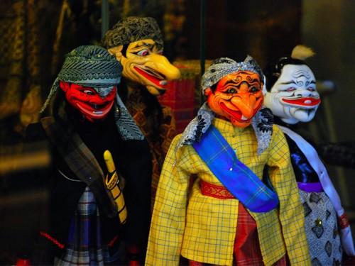 有许多艺术品商店和纪念品中心销售各种哇扬皮影偶戏人物。 Punokawan也以多种形状和风格出售。