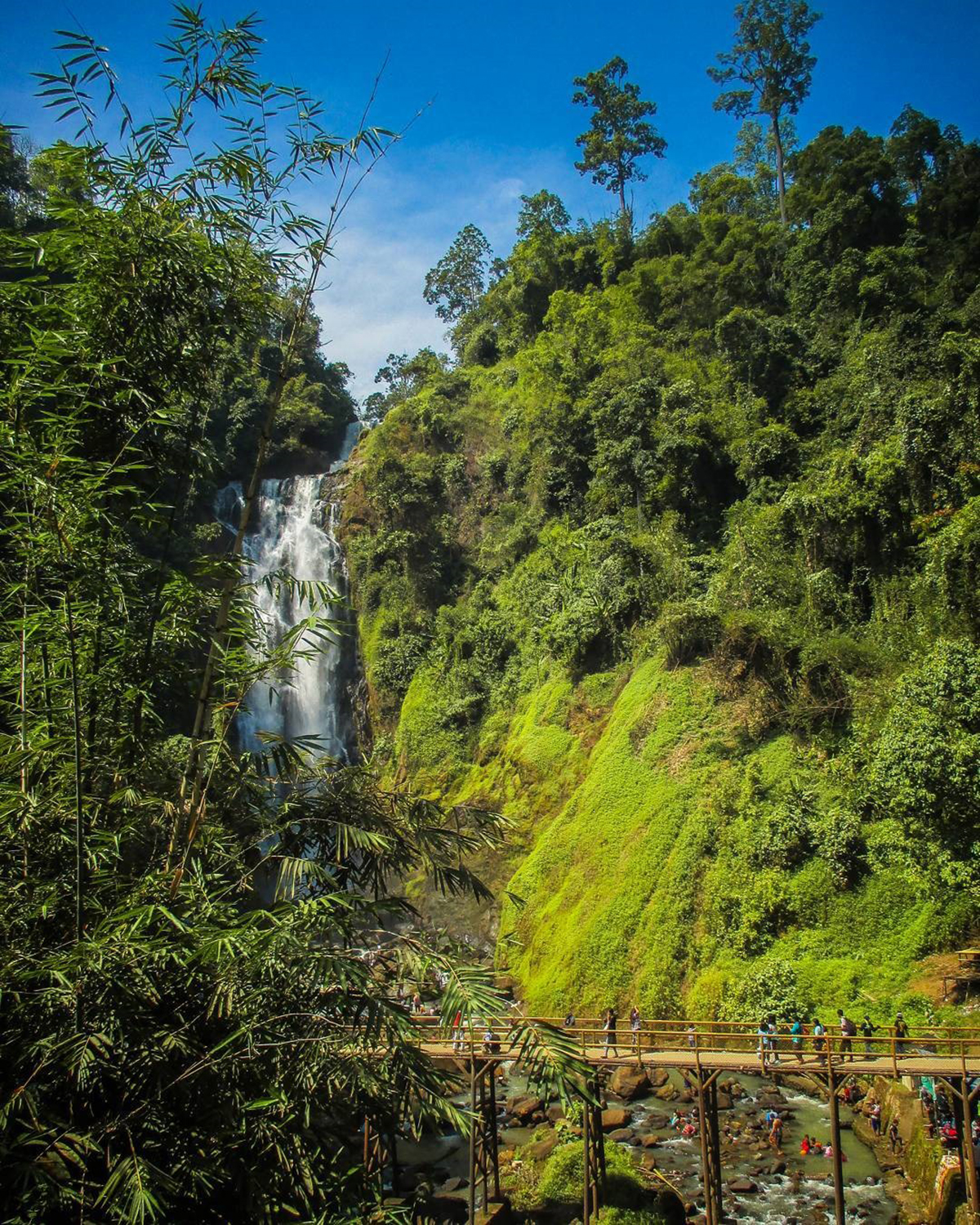 Located nearby the flow of Lematang River, Talang Sejemput Village, South Sumatra, Gunung Nyawe waterfall has a height of 100 and the water is always swearing swiftly. The tall cliffs that surround the waterfall make the area look so fascinated. The cliffs are yellow, combined with the green color of the trees. You can sit back and relax on the rocks nearby the pool and enjoy the scenery. When the weather is good, you can see the rainbow from where you sit. Being in the natural attractions, this waterfall always makes your eyes stunned with its sublime view. Therefore, this place has always been crowded, especially on the holidays.