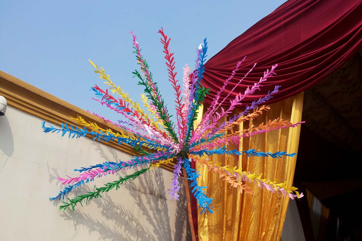 Palang Pintu is a Betawi ritual that is held to respect the bride’s family on the wedding day. It is a ritual to test how strong the groom-to-be is in a martial art, especially Pencak Silat. The groom-to-be has to perform a martial art technique to ensure the bride’s family that he is capable of protecting his wife and his future family. The groom-to-be is also expected to have a good capability in reading and reciting the Koran to prove that he can be a religious leader in the Family.