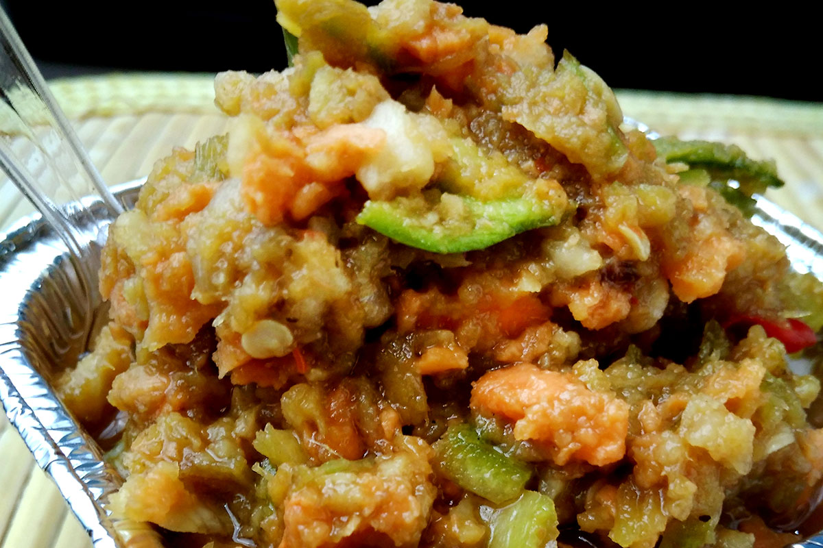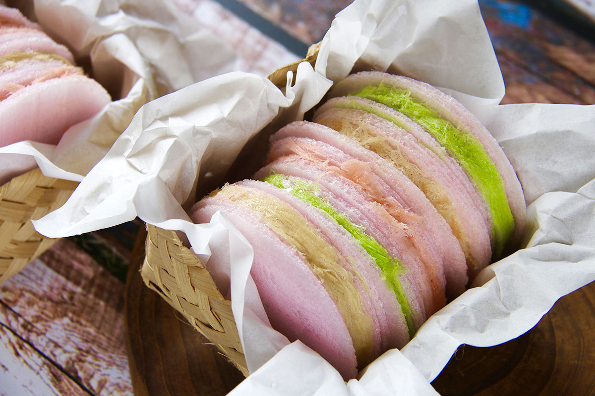 Kerak Telor is made of duck egg that mixed with roast coconut and a little bit of shrimp sprinkled on the top of sticky rice and roasted on the pan without any grease. Toge Goreng or sauté beansprouts is boiled tofu and beansprouts then poured with soy sauce and tomato, and then you sauté all of them with herbs and spices. Arum Manis is a sugar based Betawi snacks, and Rujak Bebek is a processed fruit, which we punch it until its texture is soft with a sweet and spicy taste.