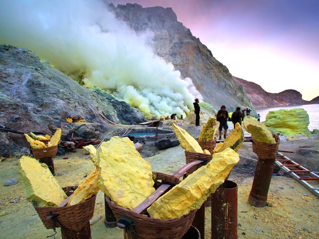 But do you know why most people flock to this stratovolcano complex? To get a glimpse of the dazzling electric blue flame located at Kawah Ijen, or the Ijen Crater. This mesmerizing spectacle can often be seen streaming down the mountain at night. The blue fire is actually light from the combustion of sulfuric gases that emerge from cracks in the volcano at high pressure and temperature. When they come in contact with the air, they ignite, sending flames up to 5 meters high.