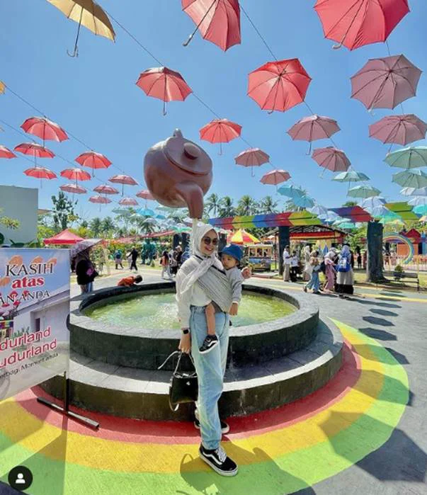 Sobat Pesona yang belum capek, mari lanjut ke ke Svargabumi. Cuma satu kilometer dari Candi Borobudur, ada hamparan sawah yang hijau segar nih, Sob. Di lokasi ini banyak spot foto bagus, dengan background hamparan sawah, miniatur gapura candi, hammock, hingga ayunan. Harga tiket masuknya sebesar Rp25.000,- per orang untuk dewasa dan Rp15.000,- untuk anak. Tempat ini dibuka pukul 08.00–18.00 WIB pada Senin, Selasa, Rabu, dan Jumat. Sedangkan untuk akhir pekan (Sabtu–Minggu) buka pukul 06.30–18.00 WIB.