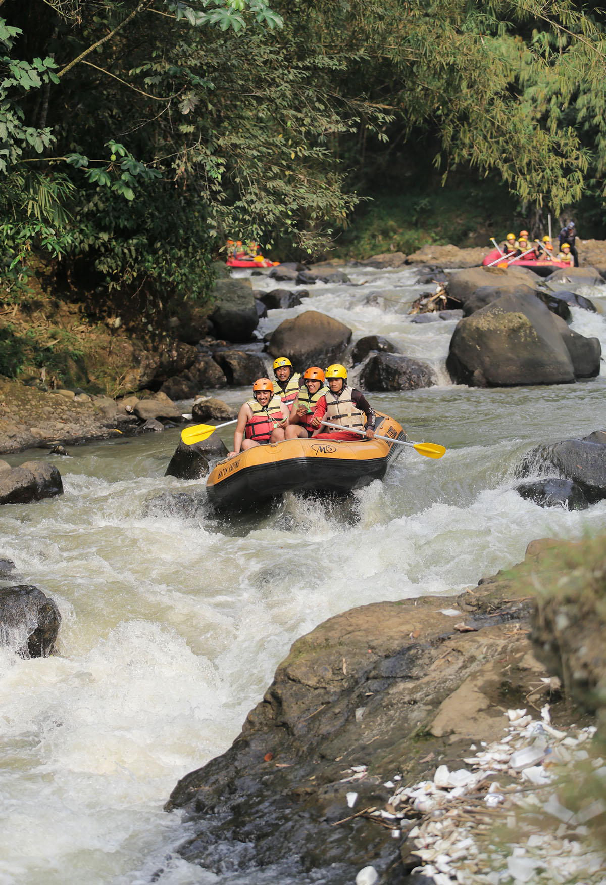 Keseruan saat offroad bikin Sobat Pesona ketagihan buat mencoba aktivitas yang tak kalah memacu adrenalin? Tenang, masih ada aktivitas lain yang cocok untuk memenuhinya, apalagi kalau bukan ikutan arung jeram di Sungai Bogor! Sobat Pesona bakal mengarungi sungai berarus deras di antara bebatuan kali besar ini menggunakan perahu karet. Bayanginnya aja udah seru banget, nih!