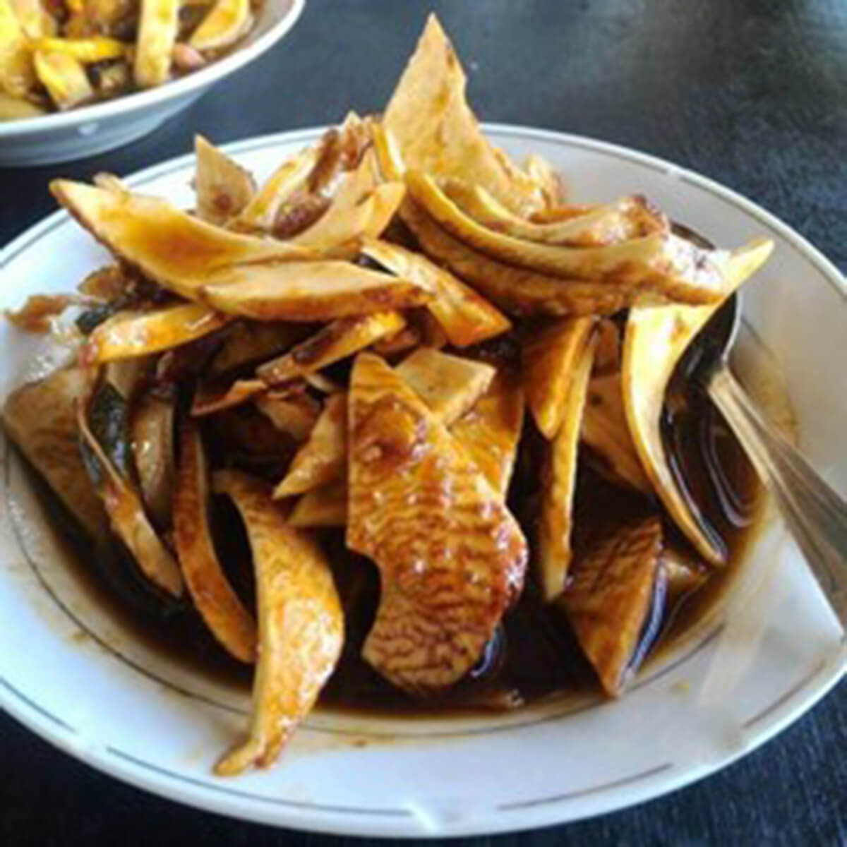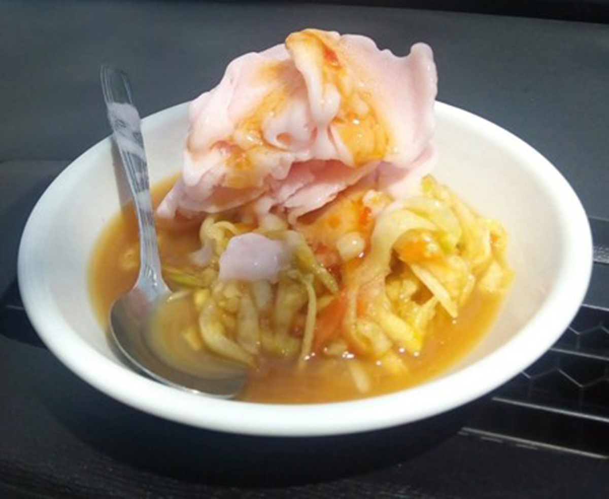 神の島にはまた、緑色の海藻と黒い目玉で作られたルジャクがあります。緑色の海藻を沸騰させ、次にココナッツと混ぜる。一方、ソースは、エビペースト、ライム、チリ、塩で味付けしたクアピンダンから作られています。このルジャクは最終的にスパイシーで、風味豊かで新鮮な味がする!