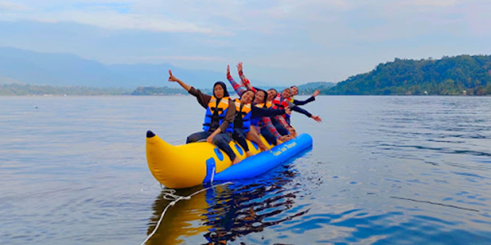 Kalau kamu liburan barengan geng kamu, wajib cobain banana boat di Danau Ranau dengan maksimal 6 orang. Pasti seru saat kamu dan geng naik banana boat lalu diputerin sama speedboat dan ending-nya kamu bakal tercebur ke danau. Tarifnya juga murah, dua kali putaran aja cuma Rp25.000 per orang dan sudah termasuk life jacket.