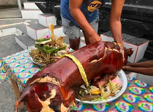 距离加隆安节还有一天的时候,人们会开始杀鸡 宰 牲 , 会 对 所 有 牲 口 和 家 禽 进 行 专 门 的 宰 杀 仪 式,然后烹饪,作为加隆安节的祭品。当然,这 天里,其他加隆安节必备的食物,比如拉瓦沙拉 (Lawar)等也开始制作了。