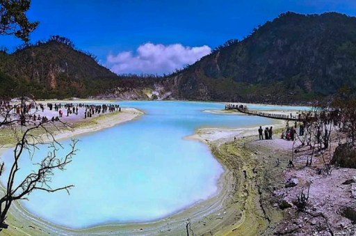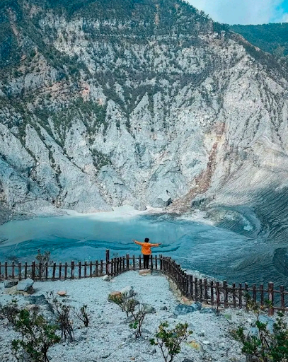 奶油火山口(Kawah Putih)被视为西爪哇最独特 和最令人惊叹的地方之一,拥有能把少女心融化的粉 蓝 色 湖 水 。 它 位 于 万 隆 以 南 约 47 公 里 的 希 维 德 镇