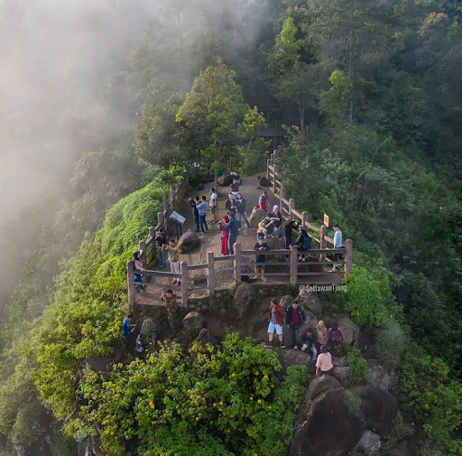 皇家悬崖(Tebing Keraton)位于万隆以北15公里 处 德 朱 安 达 森 林 公 园 ( Ir. H. Djuanda ) 内 , 海 拔 1200米,拥有风景如画的极致山景。这里有一块突 出在悬崖边缘的岩石,是观赏金色日出或日落的绝佳 地点。