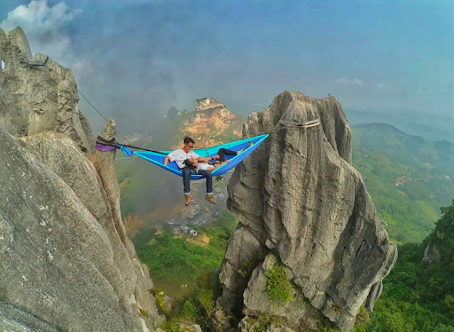 不用怀疑自己的眼睛,冒险者们正在两座悬崖间的吊 床 上 “ 午 休 ” 呢 ! 万 隆 的 西 塔 塔 悬 崖 ( Citatah Cliffs),是攀岩爱好者一定要去的地方,它位于万隆 西 部 帕 达 拉 朗 区 ( Padalarang ) 西 塔 塔 村 (Citatah)。在这里,把身体融入天地吧,与山岩 棱角的每一次接触,都是你写入苍穹之间的印记。