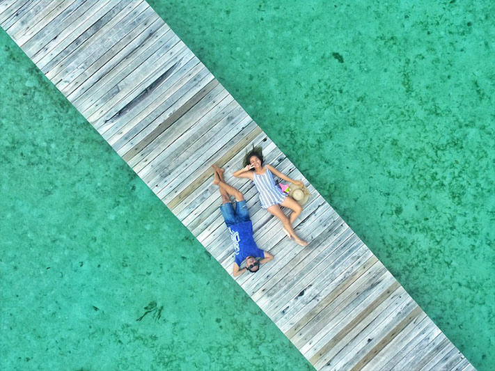 一望无际都是绿松石和蓝色完美结合的大海。您欣赏心形浅滩之美的同时,感受清风的宁静耳语,就在Pulo Cinta,爱在空中。
