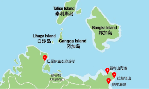 丽谷邦(Likupang), 离美娜多市区仅48公里, 位 于北苏拉威西省的最北端。附近主要有四座海岛, 像 不像一顶“皇冠”戴在苏拉威西岛上, 事实上, 丽谷邦 的美景, 也完全配得上“海洋皇冠”的称号。2019年 12月, 丽谷邦被指定为经济特区(SEZ, 2020年, 丽谷邦被印尼政府列为全国的5大超级优选目的地之 一。