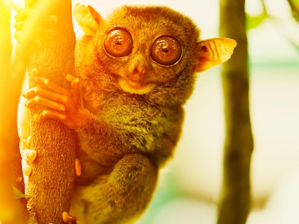 世界上最小的猴类动物,眼镜猴已经成为北苏拉威西省的标志,它的尺寸只有10-15厘米,重约80克,可以很容易地被握在您的手掌里。其分辨眼睛的直径为16毫米,占据其头骨的较大部分。眼镜猴有长腿,名字也正因如此而来。它有柔软的毛,几乎像天鹅绒,棕色灰色,浅棕色或浅橙色的颜色。