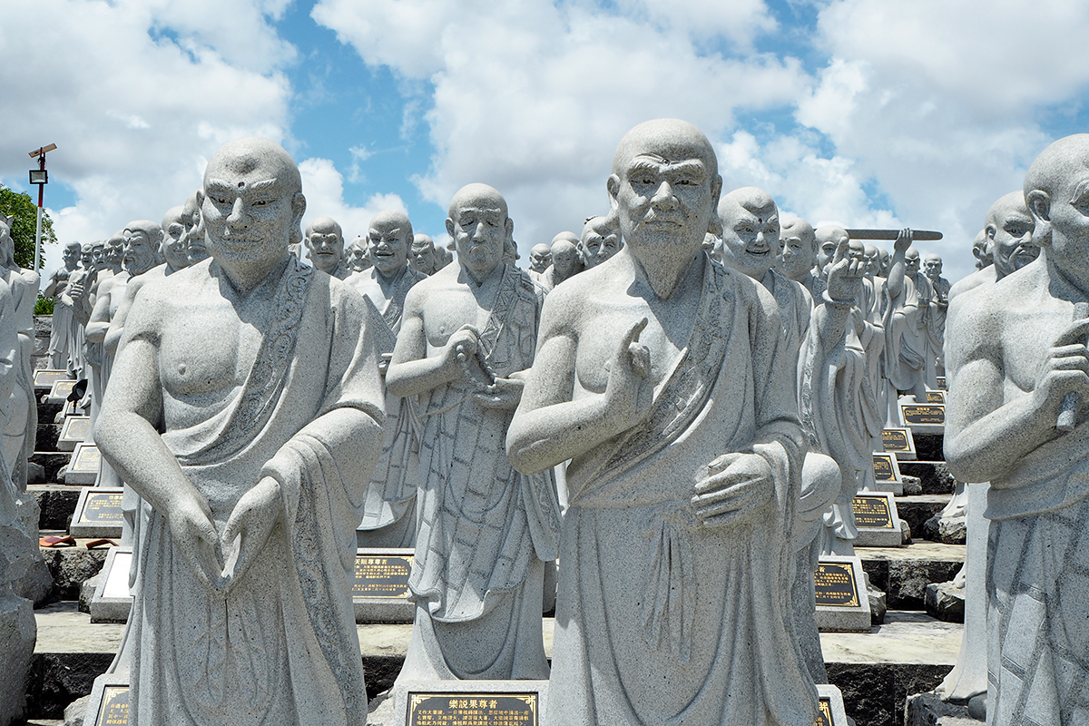 每一尊罗汉都有不同的姿势和神态,喜、怒、哀、乐、嗔、痴、癫、怪,刻画分明,惟妙惟肖,使人身临其中感受到世间情绪的喜怒无常瞬间放空。