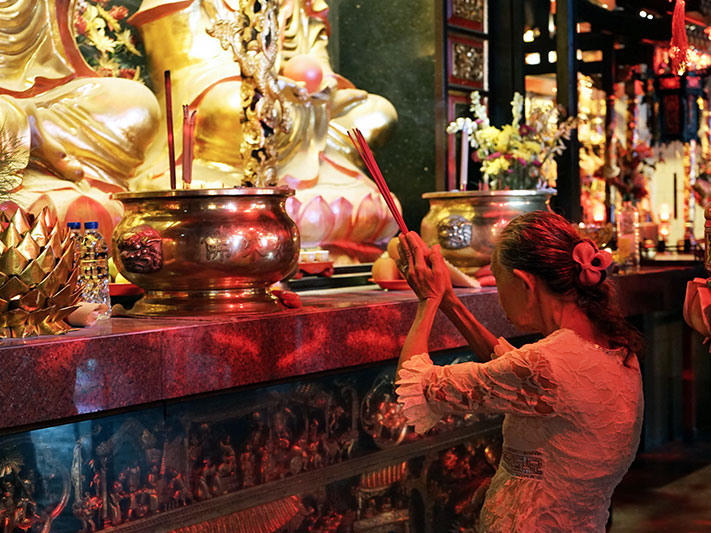 寺庙建筑以中国风格为主,大部分是黄色和红色。在这里有很多值得当做拍照背景的地点。过年一定要过来祈福,同时效法关公关圣大帝的忠诚和诚实。