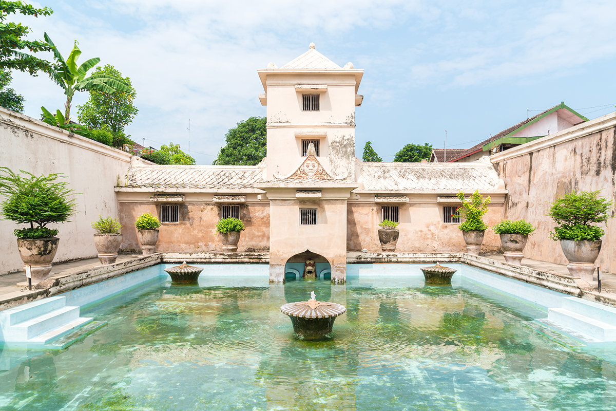 水宫位于日惹皇宫西南方,是一座由水渠、池塘和宫殿组成的建筑群,曾经是宫殿的豪华娱乐公园、游泳池以及苏丹和他的随从出行用的水路。历史上,这是苏丹在高台观看妃子洗澡,选妃子的地方。这座精心设计的休息寓所建于1758年至1765年,由一名葡萄牙建筑师设计修建的。这里最初毁于第博尼罗哥的爪哇战争,1865年的地震彻底摧毁了它。如今你看到的大多是是从前的遗迹,最能代表水宫的景观洗浴池也是后来重建所得。
