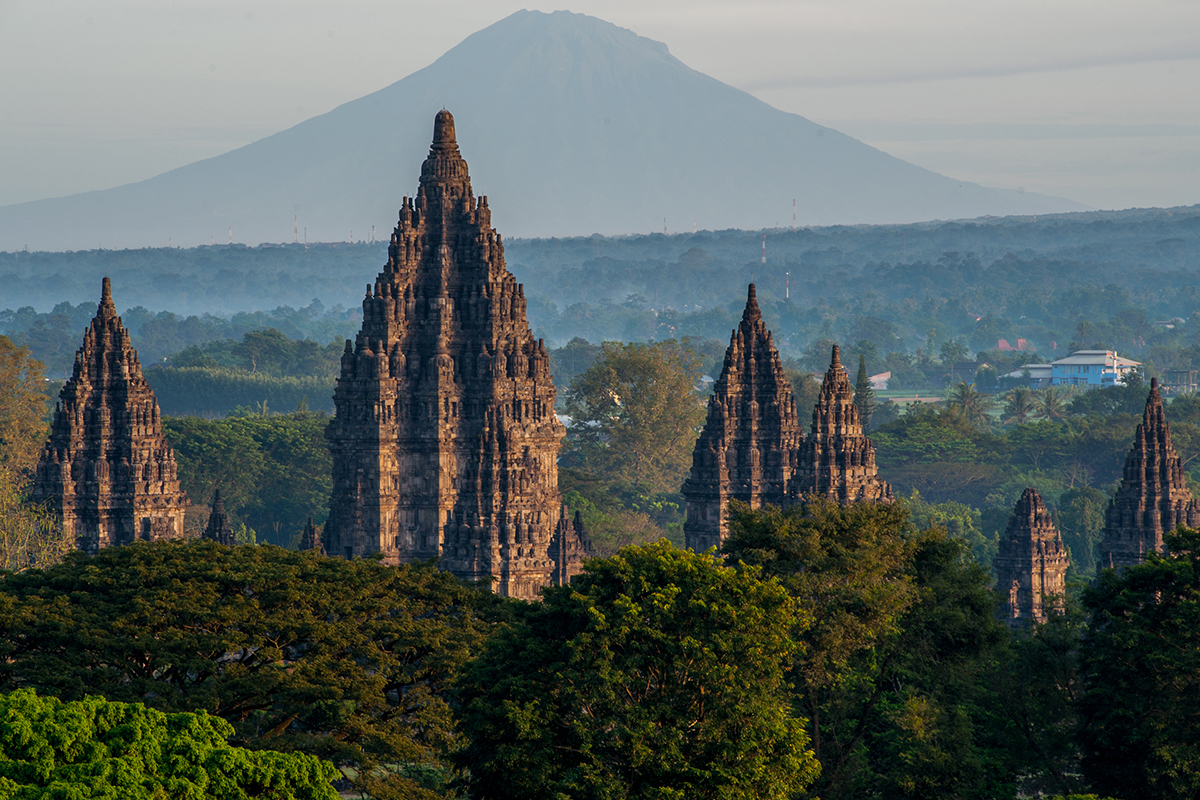 普兰班南是印度尼西亚最宏伟的印度教寺庙,曾遭受多次火山和地震的损伤,现存神庙遗址约50余座。普兰班南建于公元8-10世纪,大约与柬埔寨的吴哥窟属于同一时代,在建筑形式和雕塑题材上上都有许多相似之处。神庙有三层院落,外面两层的建筑多已是一片废墟,只有最内层保存着几座神庙,3座宏伟的主庙分别供奉湿婆、梵天和毗湿奴,另外3座小庙分别供奉他们的坐骑神牛、神鹅和神鹰。与婆罗浮屠一样,普兰班南神庙也是以火山岩建造,墙壁上布满精美的浮雕,不过其内容多取材于印度史诗《罗摩衍那》。而与吴哥窟相比较,虽然讲述的是同样的故事,但艺术风格和人物形象都有相当大的差别。