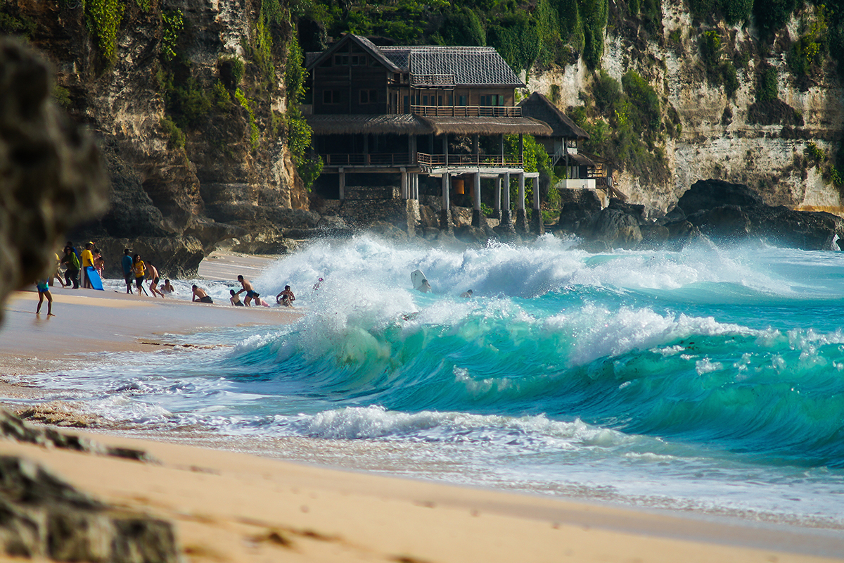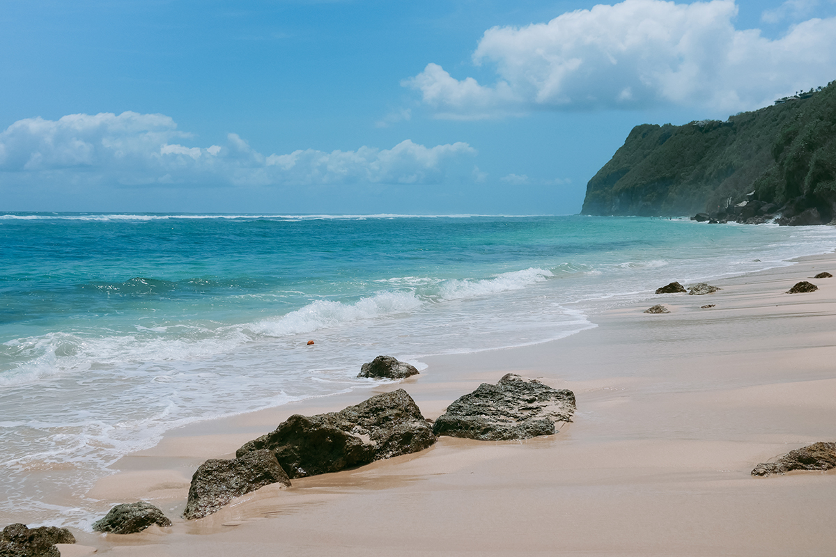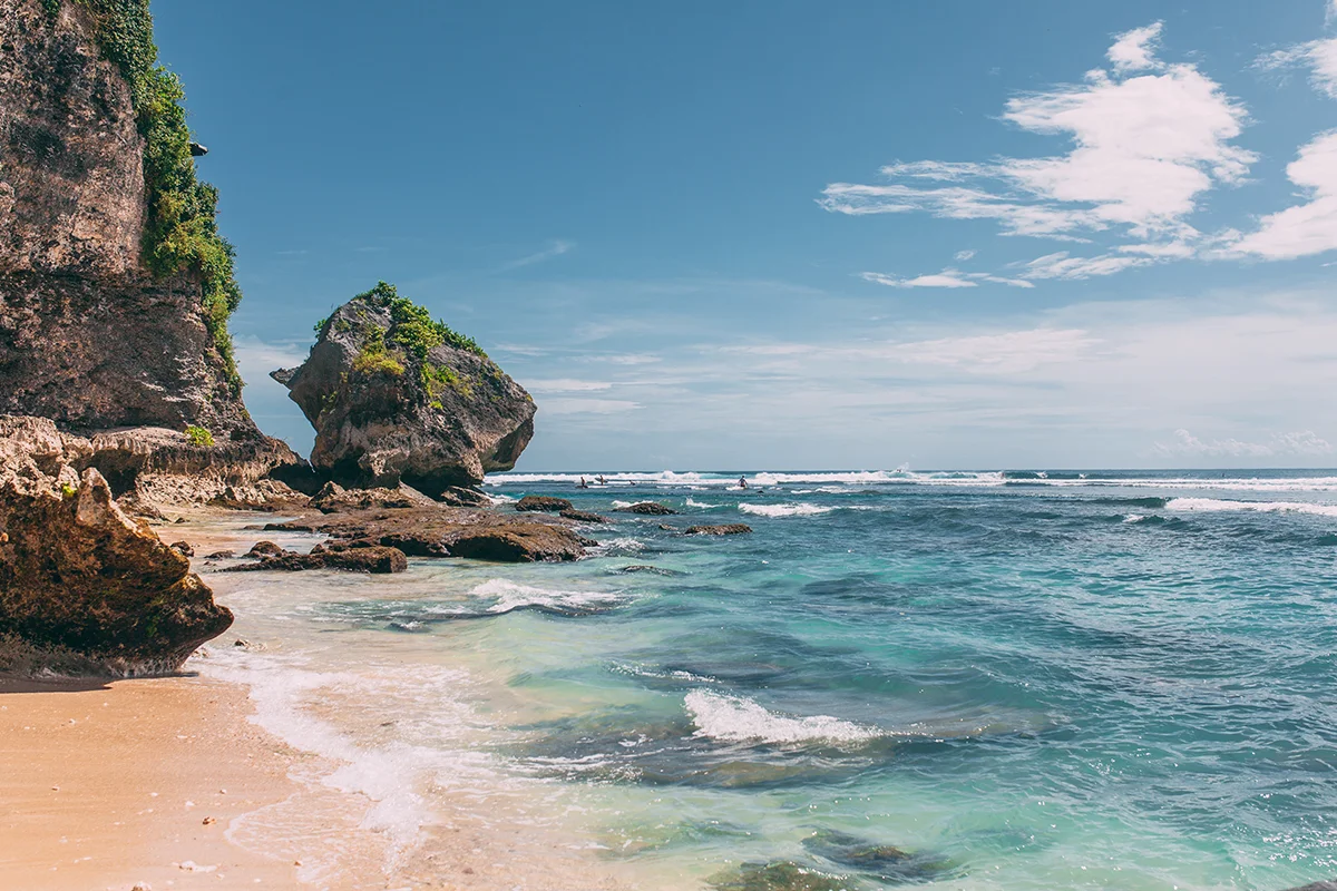 Bagi para pecinta selancar, wajib mampir ke pantai yang satu ini. Masih satu lokasi dengan Pantai Dreamland, Pantai Suluban jadi surga bagi para peselancar karena ombaknya yang besar dan kuat. Selain pasir putih dan lokasi yang tersembunyi, salah satu daya tarik utama dari pantai ini adalah ada dua buah batu karang besar yang mengapit jalan masuk ke pantai seolah-olah jadi gerbangnya. Nah, banyak wisatawan yang suka mengambil foto di terowongan batu karang yang estetik ini. Ditambah, ada juga tempat bersantai di atas batu karangnya, lho! Lengkap, kan?