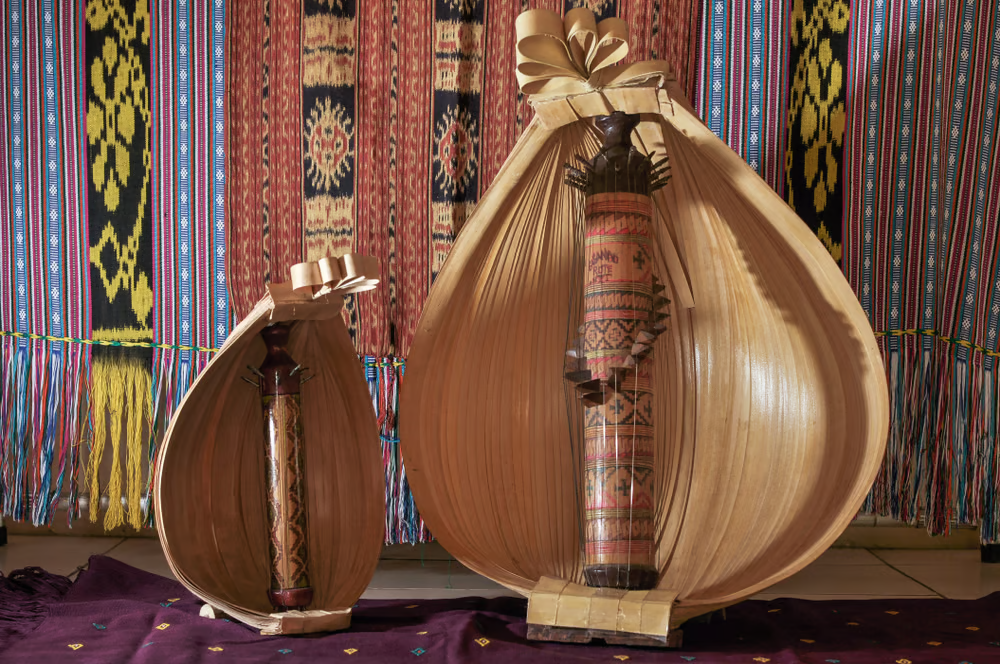 2. The Tale of Lunggi Lain and Balok Ama Sina: Another story recounts how two friends, Lunggi Lain and Balok Ama Sina, created the Sasando while crafting a “haik,” a lontar-leaf container. They noticed that fibers of the leaves produced musical notes when plucked. Inspired by this discovery, they developed an instrument using the leaf fibers as strings and the haik as a resonator, leading to the creation of the Sasando as we know it today.