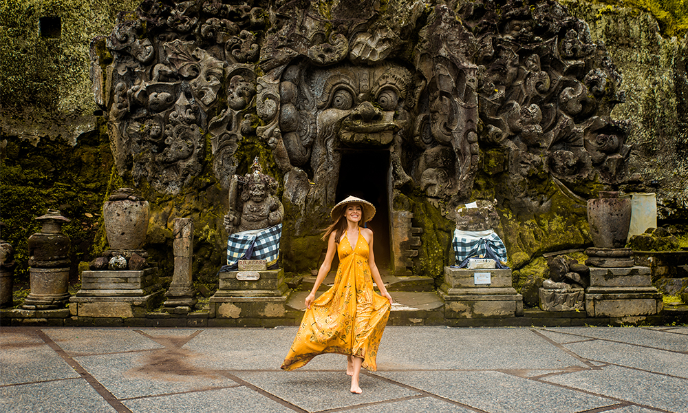 Not just an ordinary cave, Goa Gajah offers four distinct complexes. The first features archeological relics like carvings of foliage, corals, pigs, monkeys, and giants. The second is a bathing pool with fountain statues. The third showcases various Goa Gajah artifacts, while the fourth is the Tukad Pangkung Valley complex. When visiting this area, it's essential to wear a sarong and sash, which you can rent on-site.