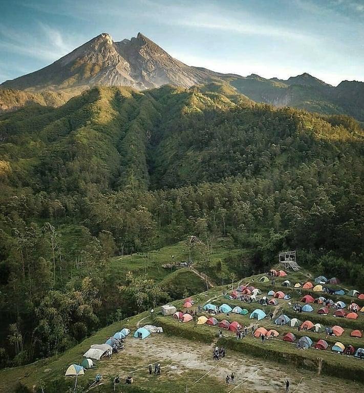 Bukit Klangon bietet atemberaubende Panoramen üppig grüner Hügel und des ikonischen Vulkans Merapi und liegt etwa 32 Kilometer von Yogyakarta in Sleman entfernt. Auf einer Höhe von 1.100 Metern ist dieser Campingplatz ein erfrischender Rückzugsort in der Natur.