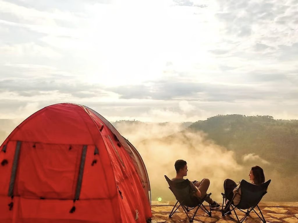 Im malerischen Teeanbaugebiet Nglinggo in Kulonprogo gelegen, bietet Bukit Ngisis einen atemberaubenden Blick auf majestätische Berge wie Merbabu und Sumbing. Dieser Campingplatz bietet sowohl traditionelles Camping als auch Glamping-Optionen und spricht somit alle Vorlieben an.