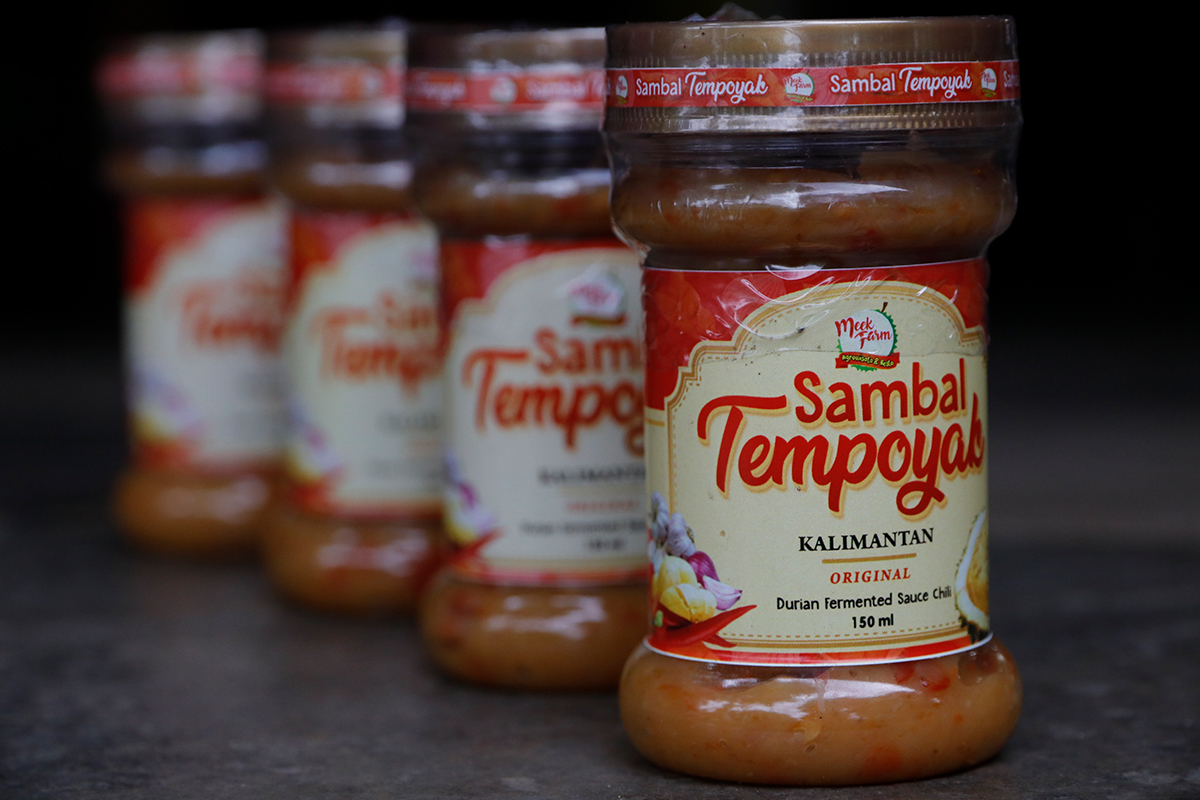 Buat Sobat Pesona yang mungkin belum tahu apa itu tempoyak, tempoyak adalah daging buah durian yang difermentasi selama 3-5 hari. Biasanya tempoyak disajikan sebagai lauk. Tempoyak juga sangat nikmat dijadikan sambal, disantap dengan nasi hangat, ikan bakar, maupun ikan asin, dijamin selera makan Sobat pasti meningkat! Sambal tempoyak original yang dijual seharga Rp17.500,- ini cocok dijadikan oleh-oleh.