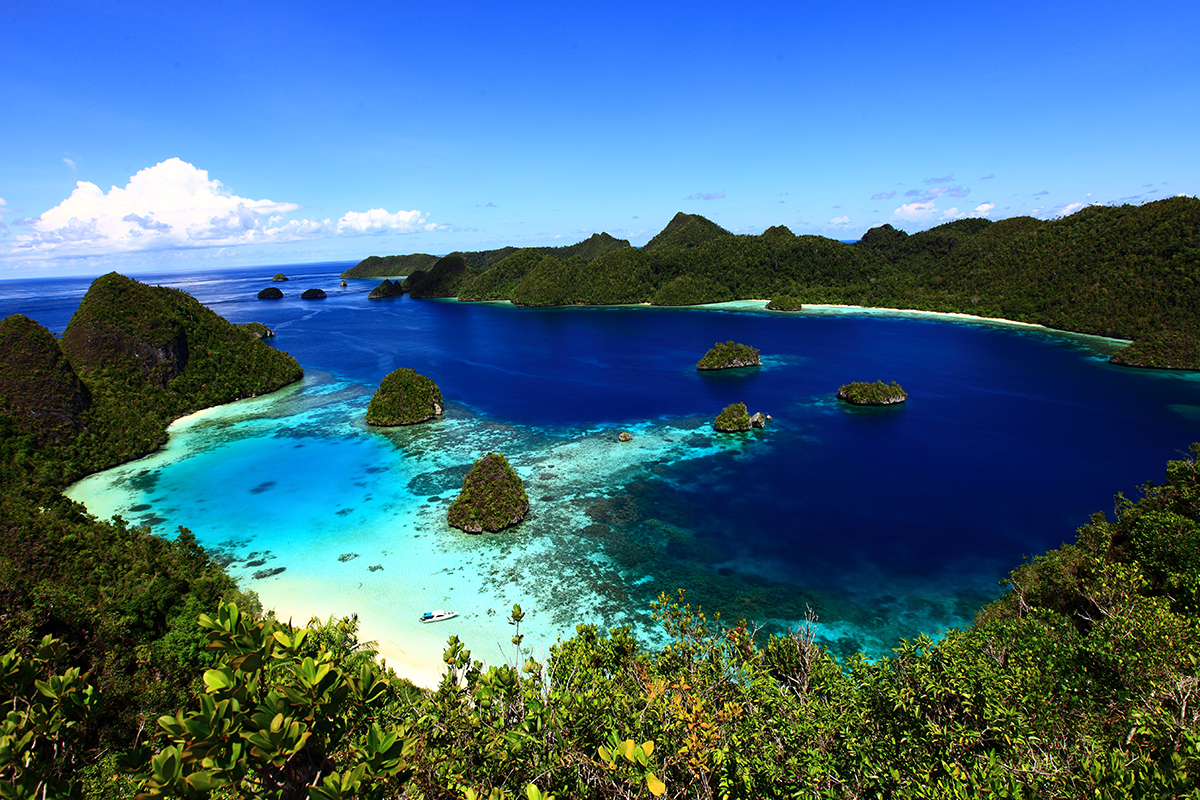 Bien que ses splendeurs sous-marines soient exceptionnelles, le paysage au-dessus de la surface est également à couper le souffle. A Piaynemo, les îlots rocheux, au milieu d’une eau limpide et d’un ciel bleu éclatant, offrent certains des paysages les plus spectaculaires de la planète, comme si ils avaient été soigneusement dessinés et disposés là dans un grand soucis esthétique. En regardant ce spectacle du haut de la colline, il semble presque que Mère Nature a simplement peint sa plu belle œuvre et nous offre un aperçu du paradis. Plus loin, sur l’île de Wayag, vous trouverez également une étonnante formation d’îlots rocheux à une échelle encore plus importante.