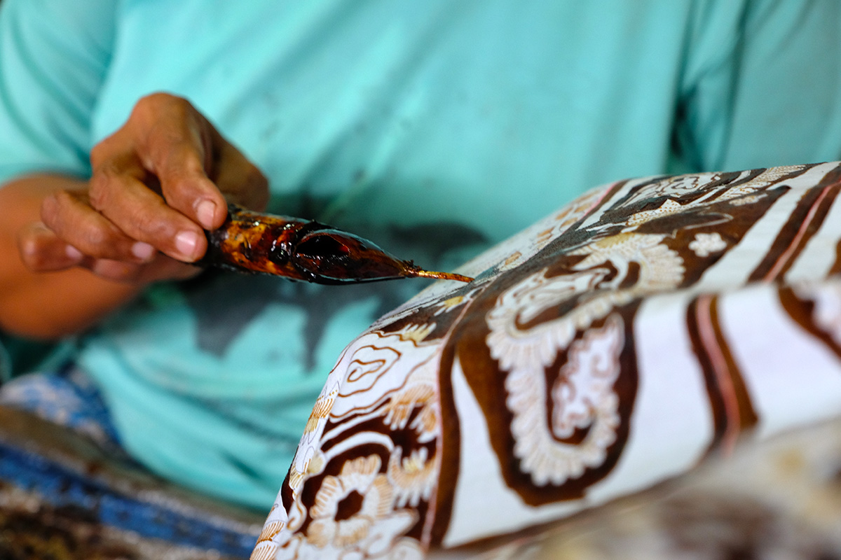 Unlike other Batik-producing areas like Solo that mainly features one distinct style of Batik Keraton (Royal Batik) or Pekalongan that focuses on Batik Pesisir (Coastal Batik), Cirebon features both styles of batik. Similar to those of Yogyakarta or Solo, Cirebon’s classic royal batik styles have here also been developed by the royal palaces (the Kasepuhan and the Kanoman Sultanates), while the coastal batik itself emerged from trade and fishing communities who brought their own motifs and style. Royal batik is characterized by motifs of royal symbols based on religious philosophy, while the coastal batiks are more dynamic and open to current trends.