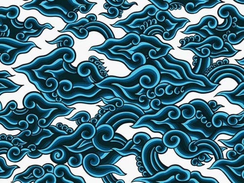 Wadasan is the classic ornament of Cirebon batik that mainly highlights the royal batik style. The motifs of Wadasan are among the most renowned of Batik Trusmi that include the Mega Mendung (Clouds), Singa Payung (lion covered by umbrella), Naga Saba (dragon), and Taman Arum, which motifs are largely influenced by Chinese empirial designs. Among the geometric motifs are: Tambal Sewu, Liris, Kawung, and Lengko-lengko. As the names suggest, the geometric ornaments mainly feature lines and geometric shapes.