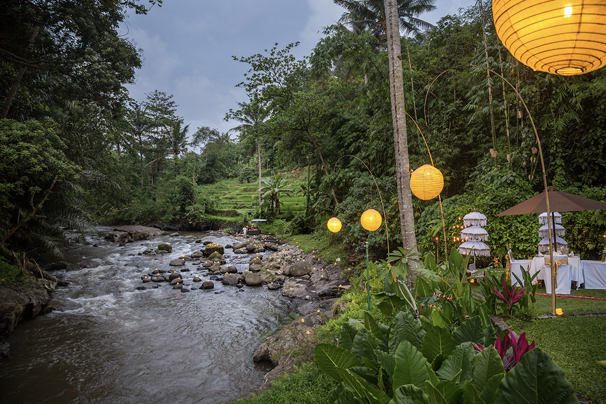 1 | Nikmati makan malam nan romantis di Swept Away, Ubud. Restoran ini menawarkan sensasi bersantap di atas dek dengan pemandangan menghadap ke sungai. Dengan lilin, dekorasi dan redupnya cahaya lentera membuat suasana makan malam begitu romantis. Apabila Sobat Pesona ingin menikmati makan malam dengan nuansa mewah, cobalah Kubu Restoran di Mandapa. Dengan sembilan ruang private yang menghadap ke sungai Ayung dipadu dengan irama alam yang menenangkan, makan malam akan jadi pengalaman yang tak terlupakan.
