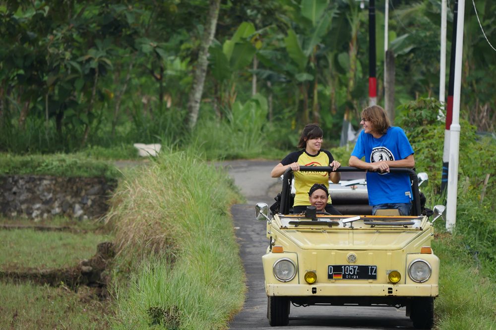 Ever tried riding a classic open-top Volkswagen car while enjoying the fresh countryside air? At Karangrejo, you can explore the village, spanning approximately 174 hectares, aboard these vintage cars. For those seeking more adventure, you can opt for a jeep tour that takes you across the village and even through ancient river paths.