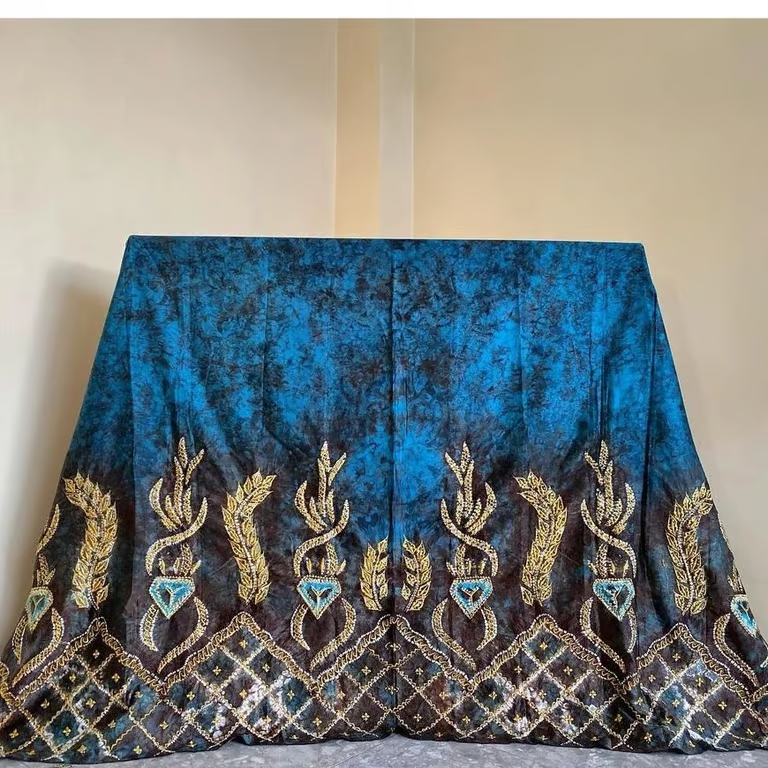 Originating in the Bangka Belitung Islands, Kain Cual resembles the Malay Songket but features its own local motifs inspired by marine life and flowers. The fabric, traditionally called Limar Mentok, is woven using cotton, silk, and often gold threads, giving it a unique texture and luxurious appeal. It has been a cultural staple since the 17th century, primarily used for ceremonial attire.