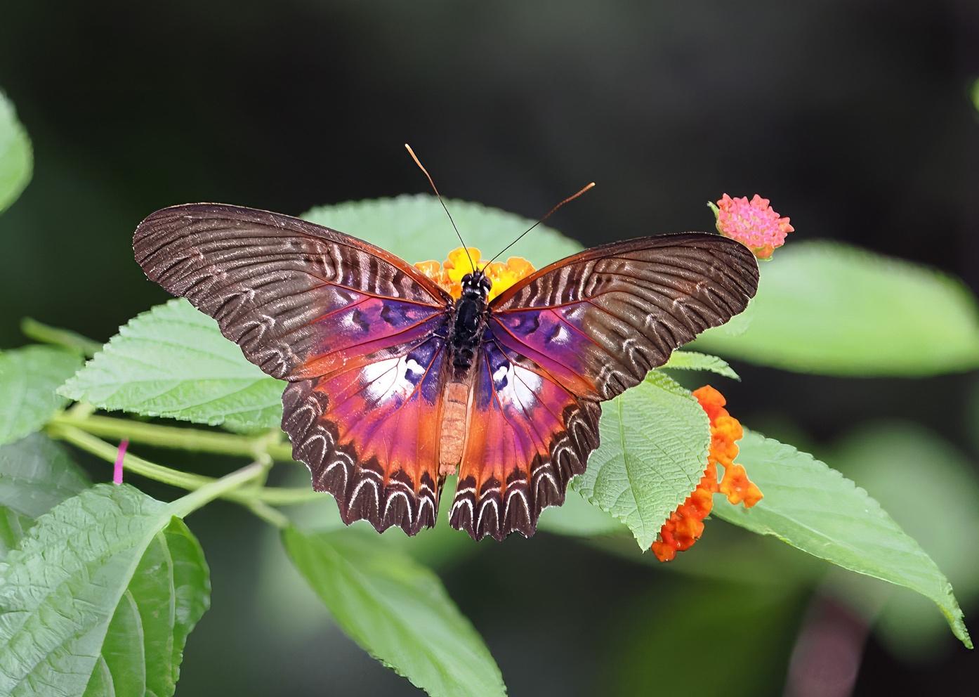 Kupu-kupu bidadari memiliki ciri khusus dengan gradasi warna yang sangat beragam pada sayap-sayapnya dengan dominasi warna kemerahan dan kombinasi warna hitam, putih, biru dan ungu.
