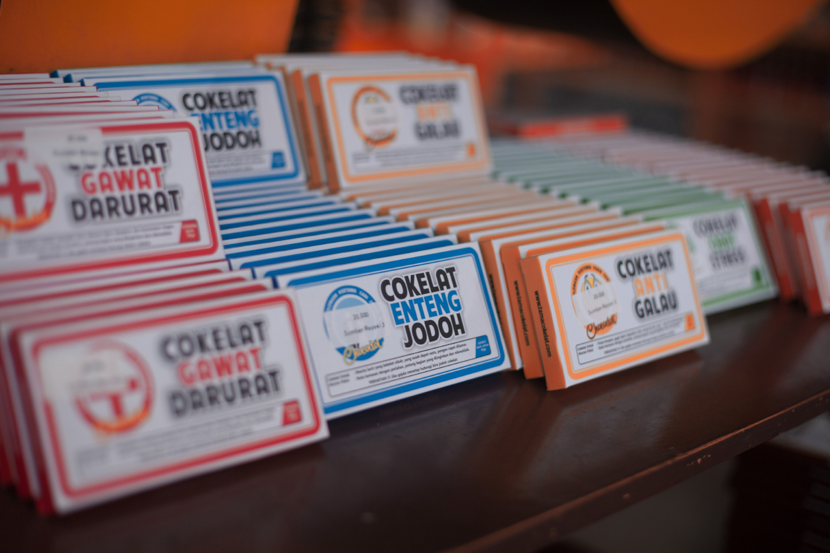 Mau camilan yang bikin Sobat enteng jodoh? Cobain deh mampir ke Chocodot, cari cokelat enteng jodoh untuk oleh-oleh. Eits, berhasil atau tidaknya tetap dikembalikan lagi ke kamu, karena ini hanya penamaan jenis-jenis cokelatnya saja. Cokelat enteng jodoh tersedia dalam 3 varian yakni Milk, Soft, dan Dark. Selain itu ada cokelat obat stres yang merupakan cokelat rasa mint, cokelat rasa sayang, dan cokelat cegah alay.