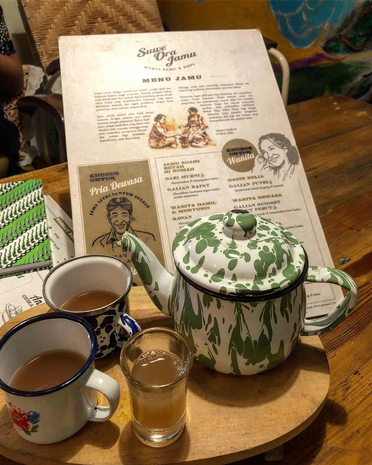 Suwe Ora Jamu in Pasar Minggu, South Jakarta, is indeed fascinating due to its authentic Indonesian dishes, like Bogor-originated soto mie. But, what is fancier? Its jamu, by all means! The restaurant serves jamu or herbal drinks that are not only healthy but tasty. The traditional herbal drinks range from traditional ones such as beras kencur and kunir asem, to fushion remedies, namely bloody tamarind, temulawak honey and pretty red rosella. They are offered from IDR12,000 to IDR35,000.