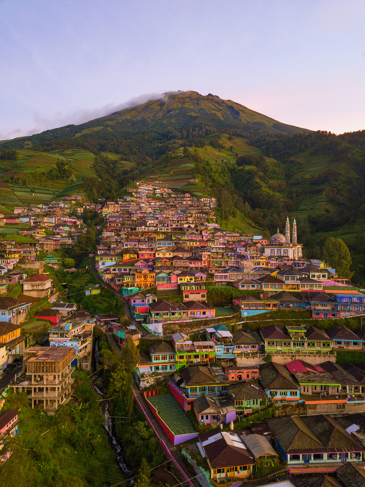 Sobat Pesona mau lihat pemandangan desa di Nepal yang ada di Indonesia enggak? Yuk, mampir ke Dusun Butuh di Magelang. Lanskap desa yang adiwarna ini sudah tersohor di antara kalangan wisatawan domestik yang berburu foto instagenik. Kenapa tidak? Karena susunan rumah warna-warni yang berundak-undak di lereng Gunung Sumbi ini terlihat sangat estetik, seperti di dusun yang ada di lereng Gunung Everest, Nepal. Sehingga, Dusun Butuh mendapat julukan “Nepal van Java”. Nah, kalau Sobat Pesona mau main ke dusun ini, cobalah untuk datang di pagi hari di musim kemarau, agar bisa melihat pemandangan dusun dengan jelas.