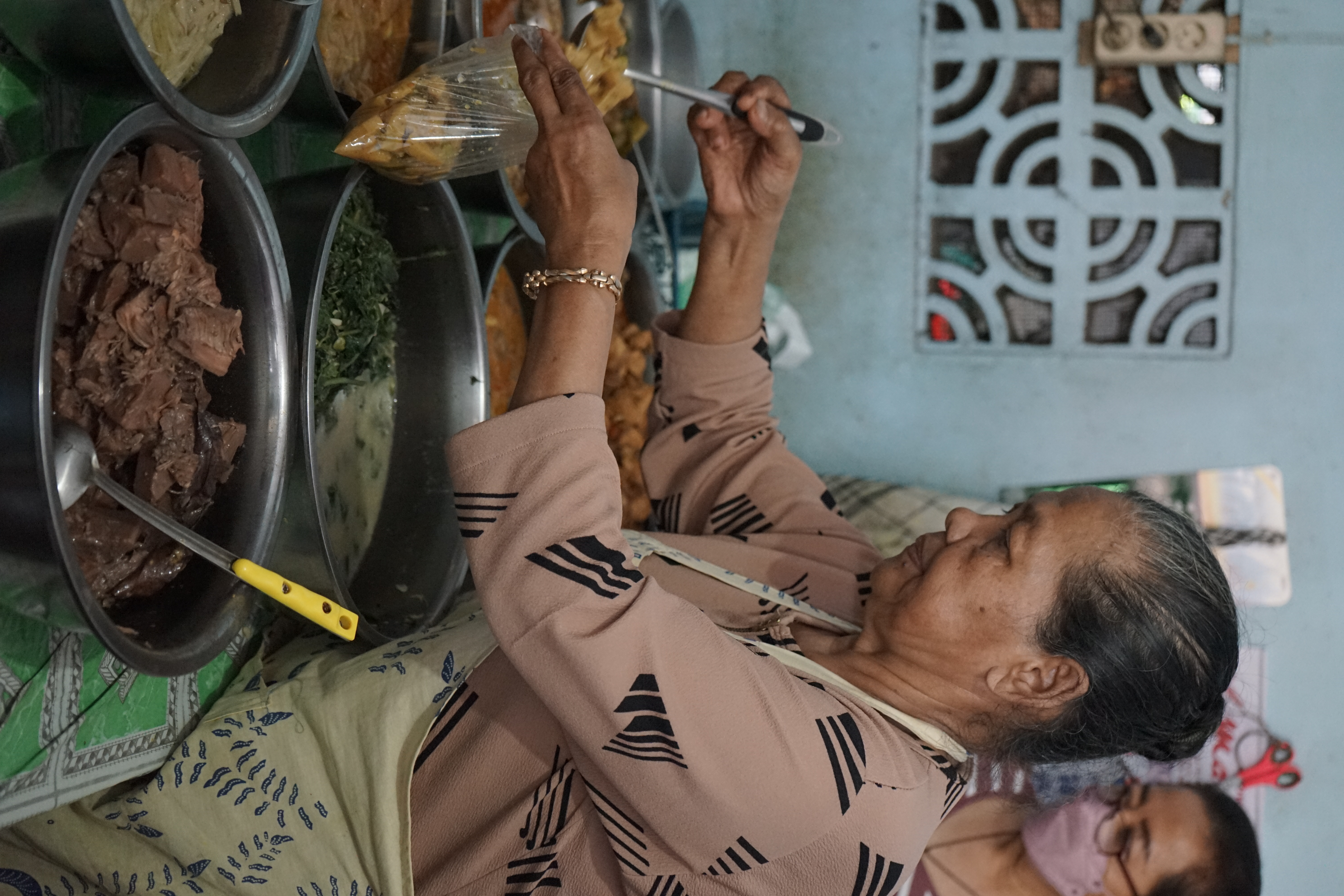 Wanita berusia 62 tahun itu cekatan dan ramah melayani pembelinya yang antri. Peminatnya tak hanya wisatawan namun juga warga setempat. Usahanya yang telah dirintis sejak tahun 2005 ini kini banyak dicari wisatawan sebagai salah satu ikon kuliner di Desa Progowati di Kabupaten Magelang.