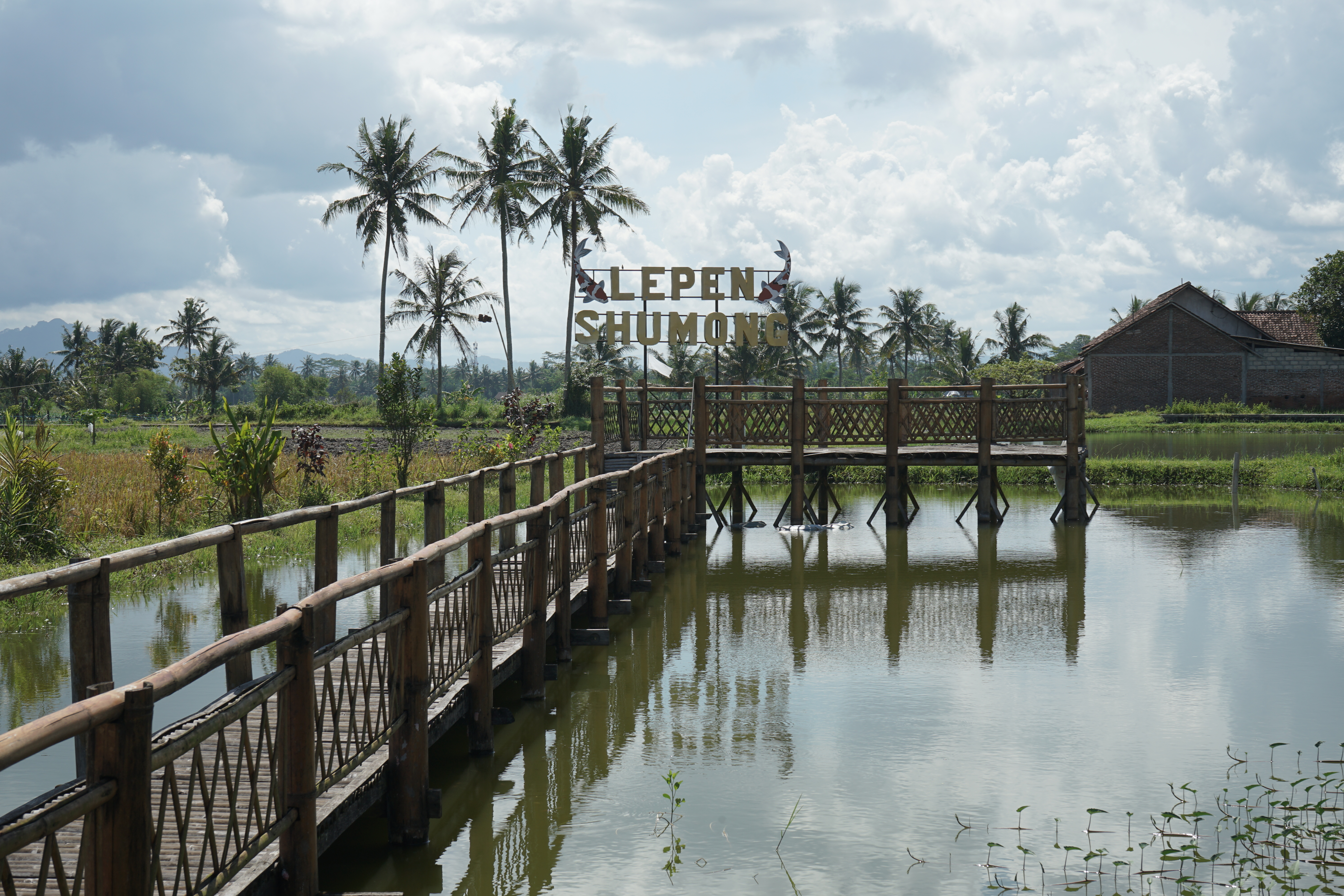 Desa ini memang desa ‘minapolitan’. Sebagian besar penduduknya mendapatkan penghasilan dari budi daya ikan. Dusun-dusunnya sarat dengan potensi wisata dan berkembang menuju desa mina wisata. Ada pun lahirnya destinasi Lepen Shumong, awalnya hanya untuk mengisi waktu di masa pandemi, warga bergotong royong dan patungan membersihkan selokan, mengisi selokan dengan bibit ikan hingga menambahkan hiasan dengan membuat lukisan mural di dinding.