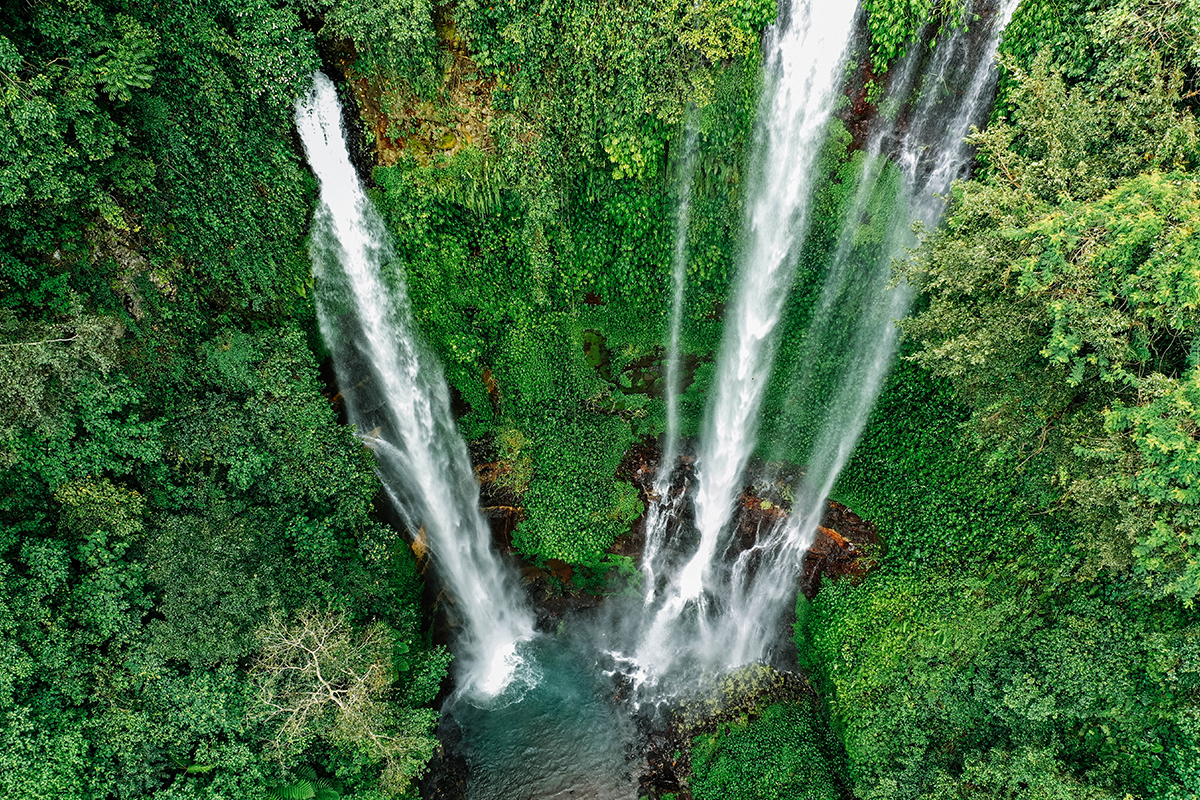 Air terjun yang satu ini dinamakan sekumpul karena terdapat bukan satu atau dua, melainkan tujuh air terjun yang ada di area tersebut. Indah banget, kan? Apalagi, tebing batu hijau setinggi 100 sampai 150 meter yang ada di sekeliling arus air terjun semakin menambah keindahannya. Sobat Pesona juga bisa berenang bahkan berpose untuk mengambil foto di kolam tempat arus air jatuh. Untuk sampai di lokasi air terjun dari pintu masuk, Sobat Pesona harus trekking sejauh 300 meter membelah hutan dan melalui sejumlah kurang lebih 365 anak tangga beton yang dibangun oleh pengelola. Jangan khawatir, selain jalur dengan pemandangan yang indah, anak tangga di jalur tersebut juga dilengkapi dengan pegangan yang kokoh, sehingga Sobat Pesona dapat lebih nyaman saat melewatinya. Jangan lupa mengenakan alas kaki yang aman juga, ya!.