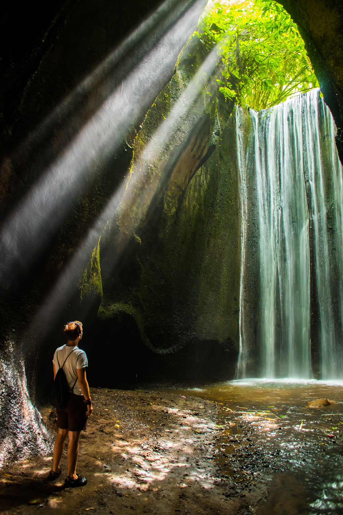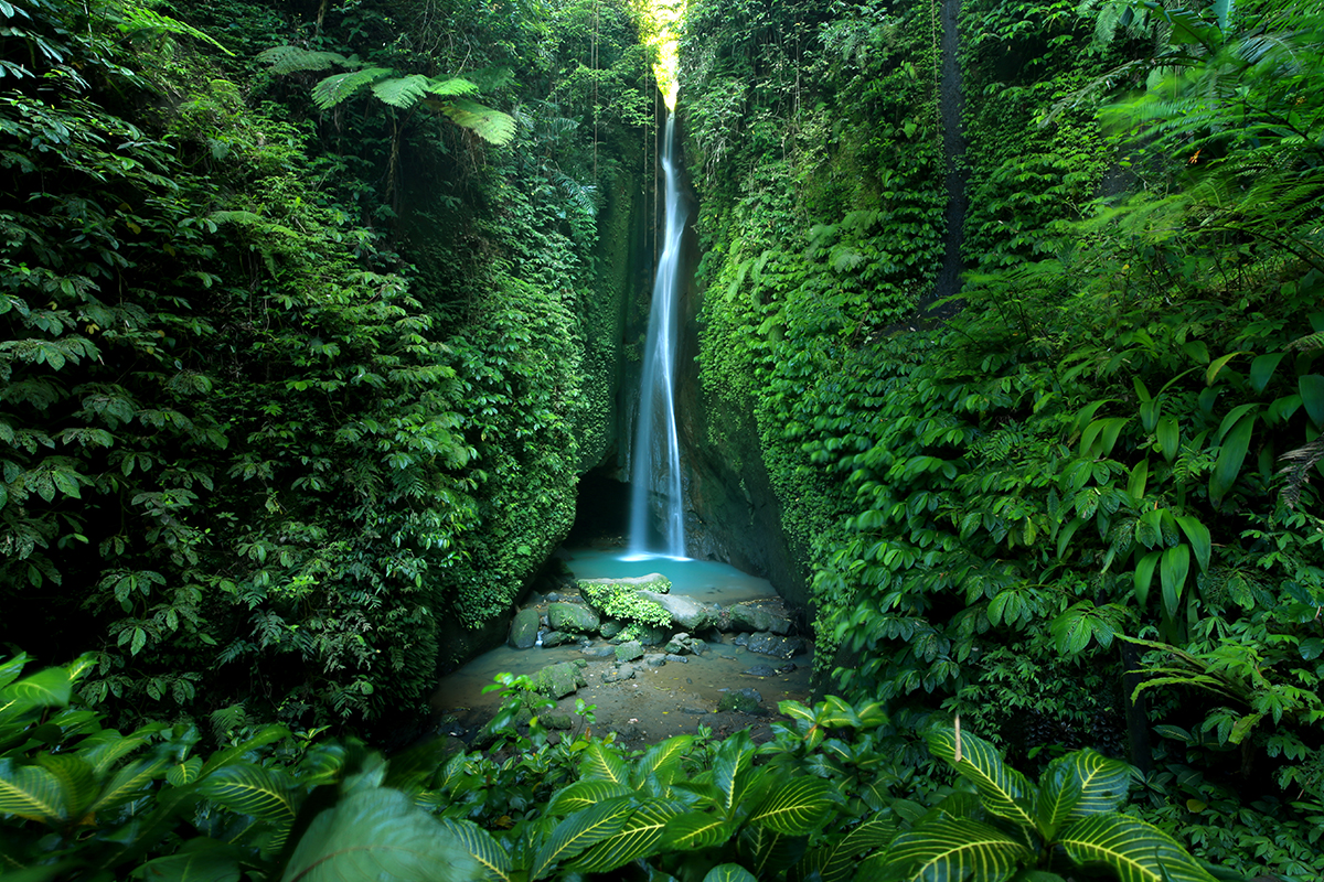 Ada hal yang membuat Air Terjun Tukad Cepung berbeda dengan air terjun pada umumnya, yakni lokasinya yang berada di dalam gua. Terletak di Jalan Tembuku di Kabupaten Bangli, air terjun ini bisa dicapai setelah Sobat Pesona harus melakukan trekking yang seru selama kurang lebih 20 menit melewati pepohonan yang rindang dan asri. Sesampainya di sana, Sobat Pesona tinggal melalui jalan setapak yang ditandai oleh aliran air tipis sebelum akhirnya disambut oleh air terjun setinggi 15 meter yang berbentuk seperti tirai bercahaya. Selain air terjun, ada batu besar yang diselimuti oleh lumut yang sangat instagramable buat Sobat Pesona berpose di atasnya!