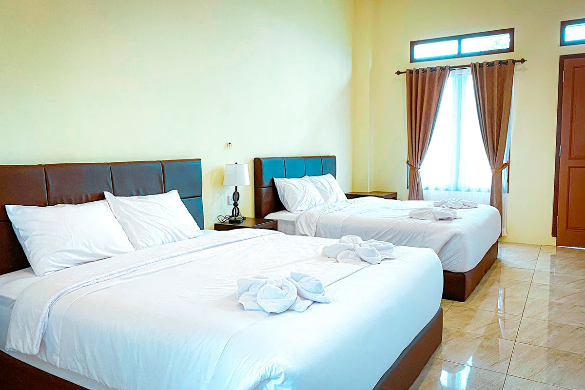 Untuk urusan akomodasi, Sobat Pesona nggak perlu khawatir. Di Desa Pujon Kidul, terdapat tempat penginapan dengan fasilitas lengkap dan sudah memenuhi standar protokol kesehatan, yaitu Guest House Pujon Kidul. Guest house ini memiliki 3 jenis tipe kamar dengan kisaran harga Rp450.000 - Rp500.000 per kamar pada hari biasa (weekday) dan Rp550.000 - Rp600.000 untuk hari libur (weekend), tetapi harga yang tertera sewaktu-waktu bisa berubah sesuai kondisi dan kebijakan pihak manajemen, ya.
