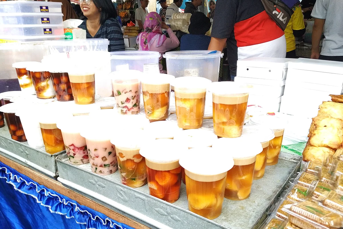Beranjak dari Masjid Sunda Kelapa, Sobat Pesona bakal punya banyak waktu luang sampai azan Maghrib tiba. Biar enggak bosen di sore hari, cobain deh berburu takjil di Pasar Benhil! Pasar yang satu ini memang telah dikenal oleh masyarakat luas sebagai sentra takjil di ibukota. Di sini Sobat Pesona bisa berburu segudang takjil lezat buat buka puasa nanti. Salah satu takjil yang paling sering dicari di sini adalah bubur kampiun, sebuah hidangan khas Minangkabau yang terdiri dari campuran bubur sumsum, ketan hitam, kolak pisang/ubi, bubur kacang hijau/padi, juga bubur conde/candil. Berbagai macam takjil favorit lain seperti kolak, es teler, dan es pisang ijo, serta aneka gorengan yang gurih juga bisa Sobat Pesona temukan di sini, lho!
