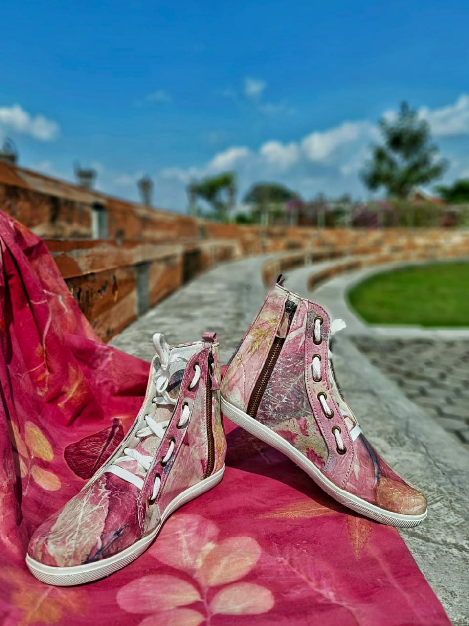 Satu lagi perempuan kreatif dari Desa Paremono adalah Ita Sarifah, yang melirik kreasi fashion dengan pewarnaan teknik eco print serba alami.