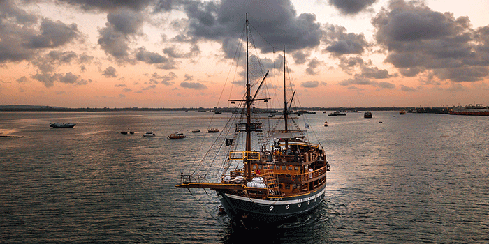 Sesuai namanya, kalau kamu ke Pirate Dinner Cruise selain dapat experience makam di atas kapal, restoran ini juga sambil berlayar mengelilingi Pantai Benoa. Nah, di Pirate Dinner Cruise selain menyediakan menu makanan, ada hiburannya juga bagi para tamu yang datang.