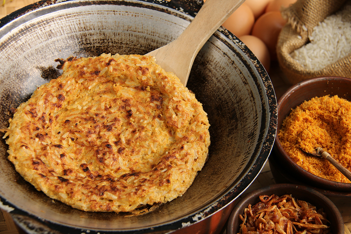 Buat teman kerja di rumah, ada camilan khas Jakarta yang legendaris nih Sobat Pesona, yaitu kerak telur. Rasa kerak telur terbilang unik karena bahan dasarnya terbuat dari ketan, ebi, kelapa sangrai, dan telur ayam atau telur bebek yang disangrai kering hingga menghasilkan bentuk serupa telur dadar. Sebelum disajikan, kerak telur akan diberi taburan bumbu halus yang terbuat dari campuran kelapa sangrai, cabai merah, kencur, merica, jahe, dan gula pasir.
